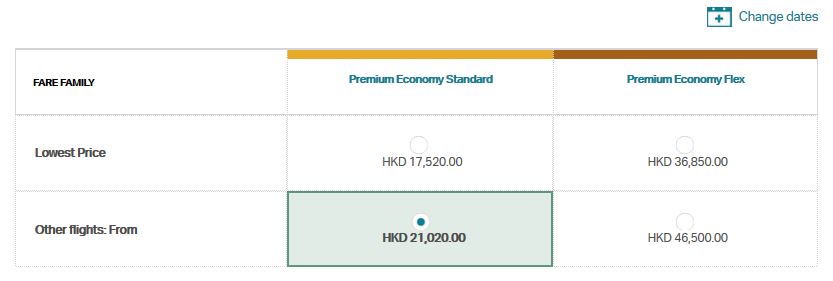 Obviously, this is even worst when you compare this with Economy award redemption where the equivalent ticket cost 12k HKD by points wise will set you back 60k miles – getting you 0.2HKD per mile.